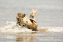 The grey seal (Halichoerus grypus, meaning "hooked-nosed sea pig") is found on both shores of the North Atlantic Ocean. It is a large seal of the family Phocidae or "true seals". It is the only species classified in the genus Halichoerus. Its name is spelled grey seal in the US, it is also known as Atlantic grey seal and the horse head seal.
